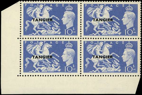 Tangier. 1950-1 set of nine in unmounted o.g. blocks; the low values in Cylinder blocks of six, the 2/6d, 5/- and 10/- in lower left corner blocks of four. SG 280-8, £280