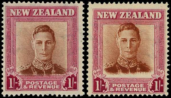 1947 1/- Die I watermark upright showing vignette printed double, one albino, unmounted o.g. with normal for comparison. Vignette registered high. SG 686 var, CPM13a[Z], $1800