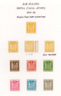 Postal Fiscals. 1940-58 set with upright watermarks (save the 7/6d, £2/10/- and £5 which are inverted), all four variants of the 1/3d chalky paper (including inverted watermark) plus the unsurfaced 1/3d and £1, generally fine o.g. on Godden leaves. The 25/- and £3/10/- are unmounted with BPA Certificates (2007), A fine collection. SG F191-211, 217-8, £8160