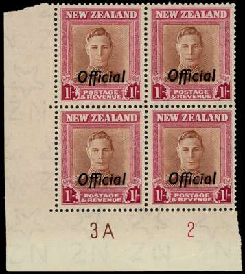 NZ SG O157bw Plate block mint