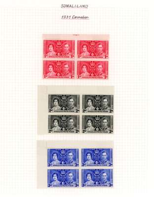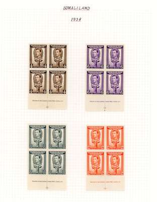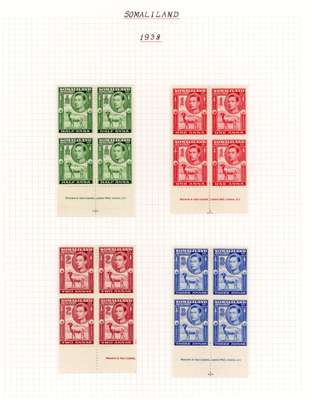 1937-51 blocks collection on Godden leaves, complete but for Victory 1a perf 13½. Fine o.g., typically hinged on two stamps in each block with two unmounted. The three definitive sets are all imprint blocks, a fine collection. SG 90-135, £1202