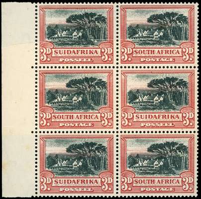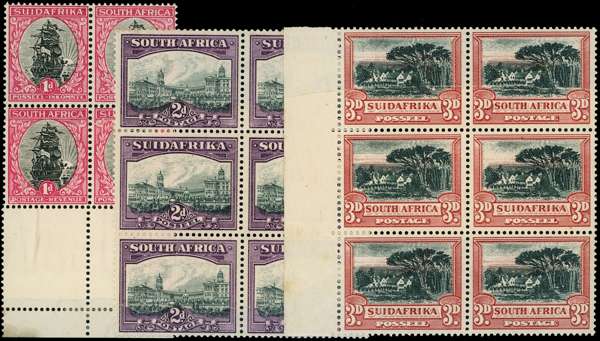 South Africa SG 43, 44bw, 45aw joined paper blocks mint