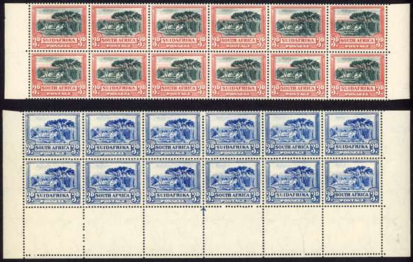 South Africa SG 45aw, 45c blocks mint