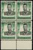 1937-52 1/- black and blue-green lower marginal block of four, showing a fine shift of the vignette upwards and to the right, unmounted o.g. SG 48 var