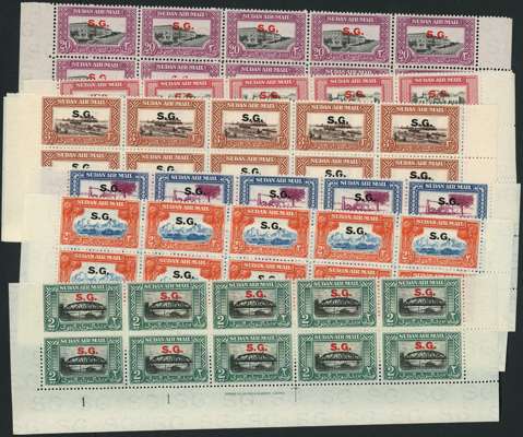 Officials. 950 Air set of eight bottom two rows of each (10 sets), with Plate numbers and imprints, unmounted o.g. SG O59-66, £300