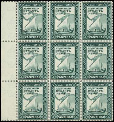 Zanzibar SG 329a block mint