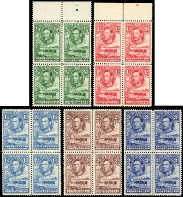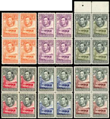 1938-52 set of eleven in unmounted o.g. blocks of four. SG 118-128, £440
