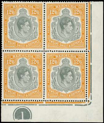 1948 (Jun) 12/6d deep grey and brownish orange on thin chalky paper Plate block of four, unmounted o.g. Ex Dickgiesser; scarce. SG 120c, £480
