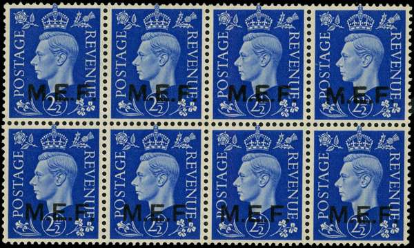1942 Nairobi 2½d round and square stops unmounted o.g. block of four se-tenant pairs, fine. SG M8b, £1300