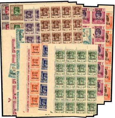 Officials. 1947 set in unmounted o.g. blocks of twenty, quite heavily toned. SG O41-53, £4500