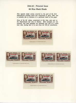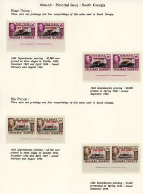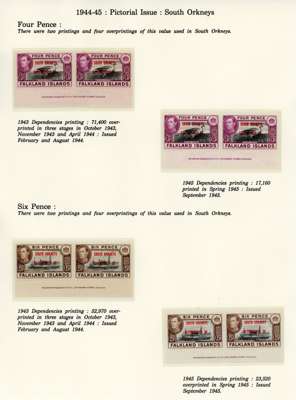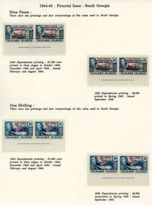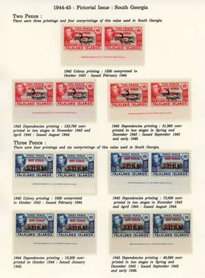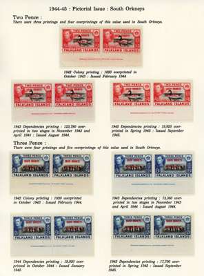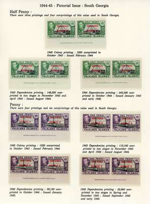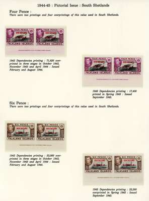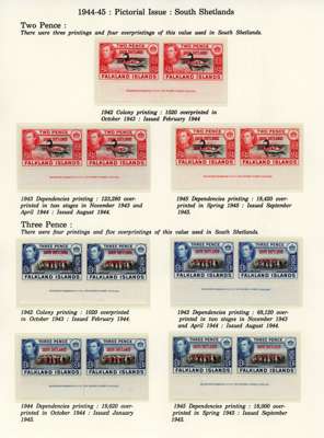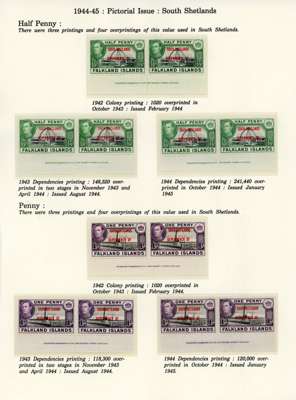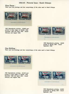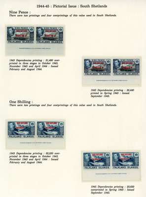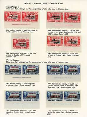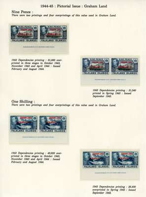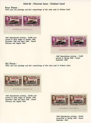 1944-5 overprints set for each Dependency, imprint pairs of each printing (not including the Graham Land ½d blue-black, and the Graham Land 2d 1944 printing only represented by a single), unmounted o.g. Ex Ayre. SG A1-D8