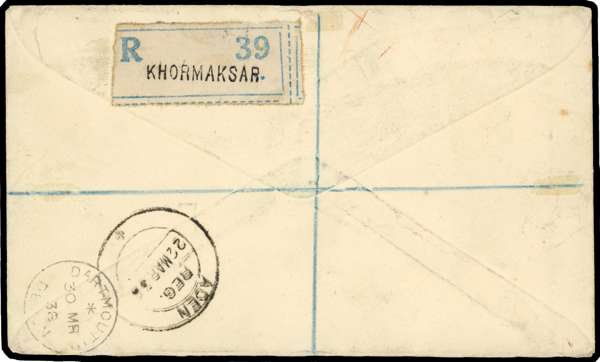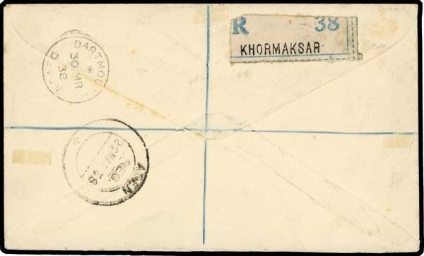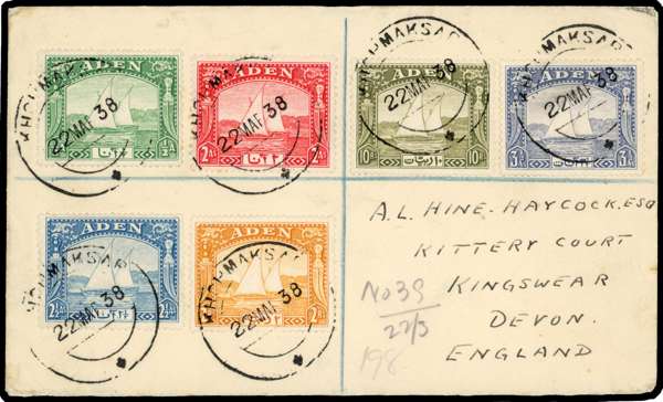 1937 Dhow set on two neat registered covers to Devon, Khormaksar CDSs of 22 MY 38, with registered labels on reverse. Attractive pair. SG 1-12, £850 as stamps