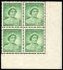 1937 1d emerald-green lower right corner block of four with Plate 7, large part o.g., hinged on the top pair only. SG 165, ASC 181zu, $950