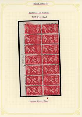 1951 Festival 2½d top left corner block of fourteen with a strong inking flaw affecting nine stamps, fine unmounted o.g. Spectacular, ex Temple. SG 513 var