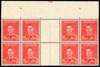 1938 2d scarlet perf 15 x 14 interpanneau block of eight with large part of Plate 10 at top, o.g., lightly folded up the gutter. SG 184, ASC 188zh, $2500