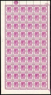 1945 50c deep magenta perf 14½ x 14 left pane of sixty unmounted o.g., mostly fresh, six stamps affected by minor foxing. SG 153a, £1800