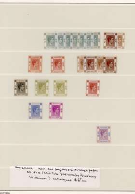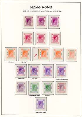 1938-52 definitives mint collection on leaves with basic set (30c perf 14) mint, then a range of shades and 15c broken character x 2, additional four $2, two $5, one the 1946 yellowish green on ordinary paper, and $10; a few others including eight Requisition letter pieces and some sheet markings. SG 140-162