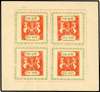 1935-41 5r vermilion and yellow-green with tablet Type H sheet of four, unused, without gum as issued. Fine. SG 72, £1000
