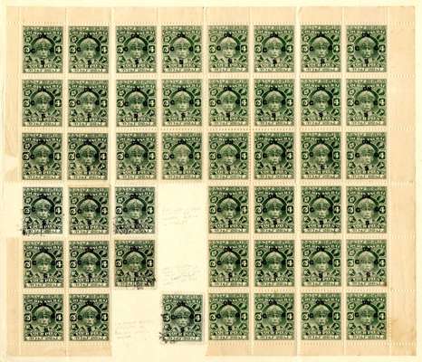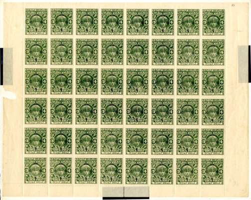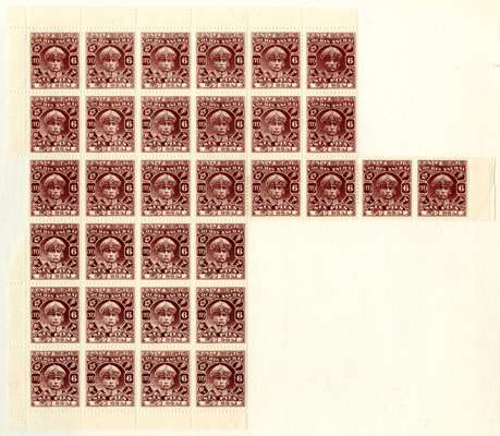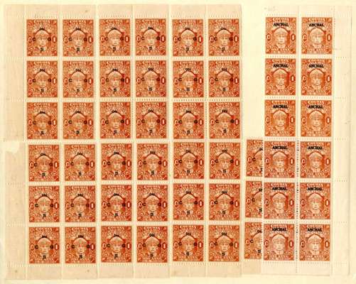 1933-8 (litho printings) multiples (359 stamps), chiefly mint/unused. SG 68 three sheets, 69 block of 32, 74 block of twelve; O47/a partial reconstruction (six mint blocks of 6, one of five plus 4 used singles), O48/a partial reconstruction five mint blocks of 6, one of five and a used single), O52 partial reconstruction (seven mint blocks of six) and O54a complete sheet. Ex Trowbridge
