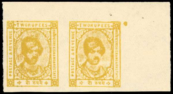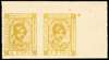 1943-7 2r yellow imperforate horizontal top right corner pair, fine unused. Ex Harell. SG 90ba, £1400