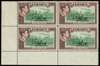 1938-52 1/- green and purple-brown lower left corner block of four, R11/1 repaired chimney, fine unmounted o.g. SG 130a, £650