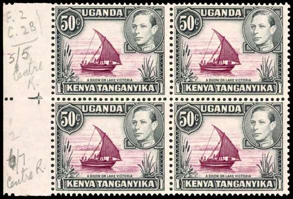 1948 50c brown-purple and black marginal block of four, unmounted o.g. A very scarce multiple. SG 144c, £520