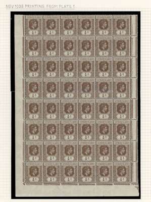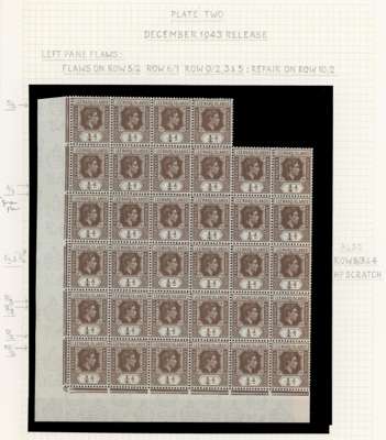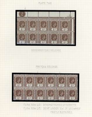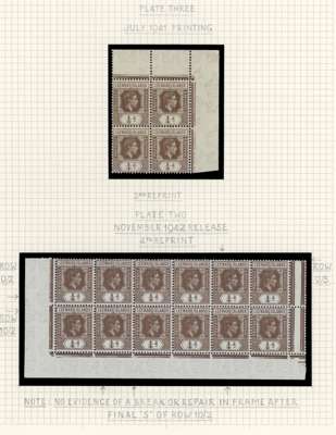 1938-51 ¼d study collection of varieties and printings, written up on leaves, mostly in multiples; 205 stamps mint (mostly in multiples) and 13 used. Includes all the significant flaws except the ‘serrated edge’. Ex Harold Green. SG 95, a