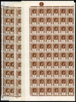 1938-49 ¼d sheets and pane. Plate 1 printing complete sheet, Plate 2 complete sheets from Oct. 42 (with R10/5 RP serrated edge) and May 44, and Plate 3 right pane from June 49 printing, all of course with the appropriate flaws. Unmounted o.g., sensible folds, a little splitting otherwise fine. SG 95, aa, a