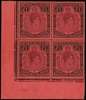 1942 (Oct.) £1 purple and black on carmine paper lower left corner block of four, HPF #49 sliced scroll, unmounted o.g. SG 114a, £360