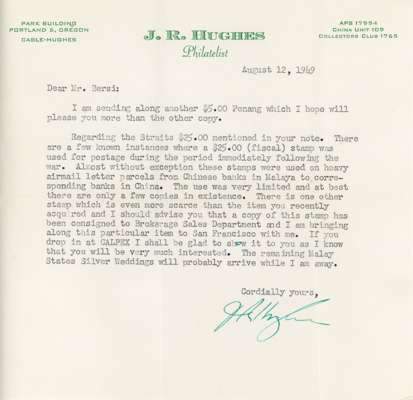 Postal Fiscals. 1938 KG VI $25 purple and blue on blue paper used on piece with Straits $1 (4) and $5, plus BMA $5 purple and orange (4) for a total franking of $54. Singapore CDSs of 2 JA 46. SG F1, £650