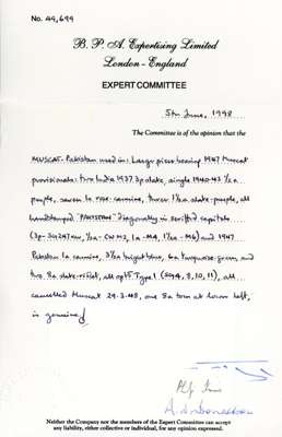 Muscat 1948 piece with Pakistan stamps