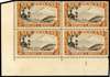 1936 Pictorial 3/- perf 13½ x 14 lower left corner block of four with Frame Plate 1, watermark inverted and reversed, unmounted o.g. Very fine save for a small, light toned patch at the base of the selvedge on the reverse. A very rare Plate multiple, ex Baillie. SG 569ay, £2000+