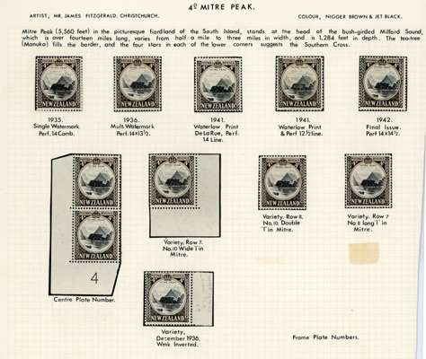 1936-42 Pictorials, a mint collection with a page for each denomination, singles and blocks, giving a succinct account of the many changes involved in the issue. Would serve as a compact reference for the different watermarks, Dies, perfs (all as per SG), major shades (includes 2d brown-orange), some plate varieties including listed, etc. We note 1941 9d (SG 630) in a corner block, the stamps unmounted, a little browning on reverse; SG 568bw, 589c and the 3/- Single watermark inverted and reversed. A fine collection. SG 556/590c, 630-1