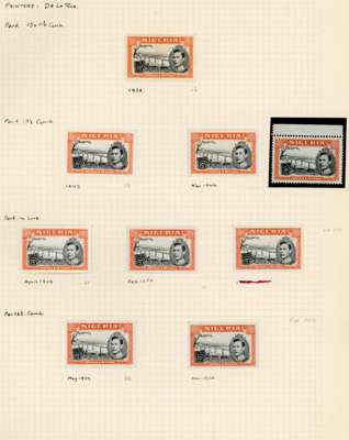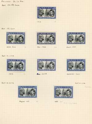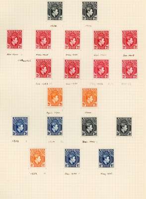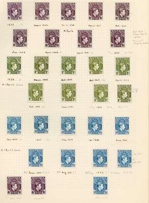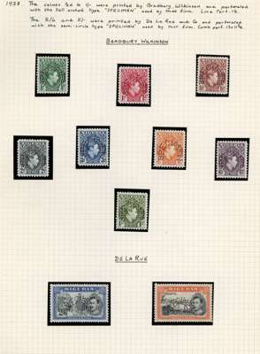 1938-51 mint collection (87) on leaves, all allocated to printings; including 4d orange, 2/6d x 9 with first printing and the deep blue, 5/- also x 9 with first printing; plus the original set of ten Specimens. All seem to be first hinge and fine, although two of the Specimens have a foxed perf each. SG 49-59c