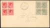 1941 local envelope with blocks of four of the 2d grey and 2d scarlet, Nassau CDSs of 23 SEP 41. The upper right stamp in the 2d grey block shows the R3/6 RP short ‘T’ (the stamp below with faults). Very scarce on any sort of cover. SG 152a, £375 off cover