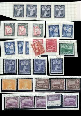 1938-52 mint collection on leaves with singles and blocks of four perf 12½ (no 24c block, but includes 1c yellow-green imprint block); most of the blocks are hinged on the top selvedge only. Also a balance of oddments on a Hagner sheet with values to $2 (4) and $3
