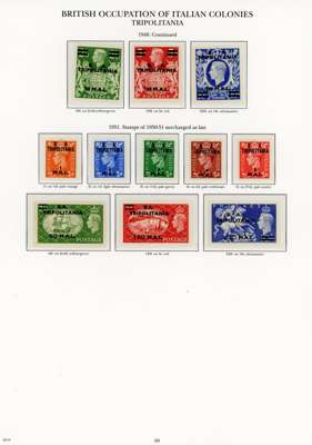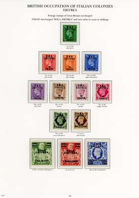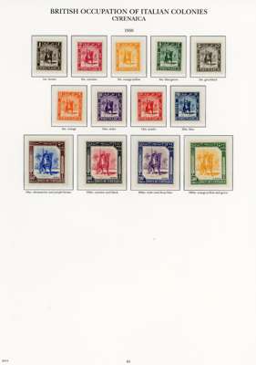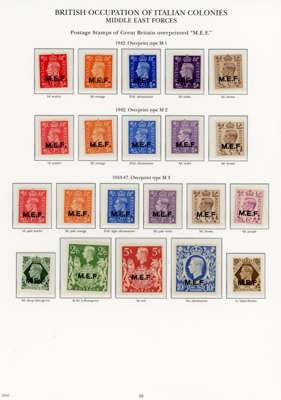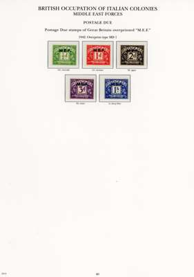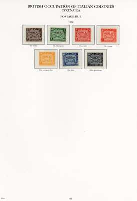 MEF, Cyrenaica, Eritrea, Somalia and Tripolitania basic issues complete including Postage Dues, unmounted o.g. (MEF without Nairobi round and square stops overprints.) On printed leaves in hingeless mounts, all seemingly fine. SG M1-TD10, £1691