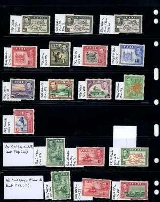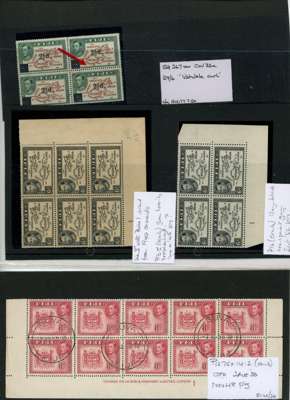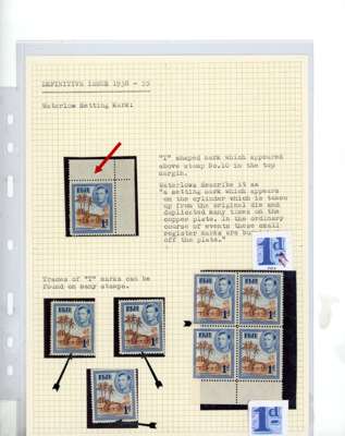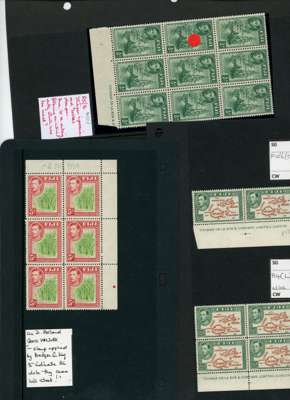 1937-55 mostly mint specialised group on cards, etc, including large part o.g. set and perfs; block of 40 1½d dark carmine with many flaws; setting marks, falling coconuts, ½d perf 14 unmounted block, plate varieties, imprint blocks, etc