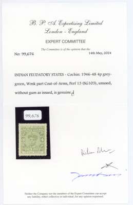 IFS Cochin 1946-48 4p grey-green wmk 27 perf 13