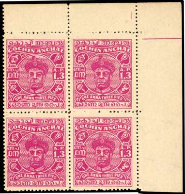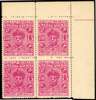 1946-8 1a3p magenta corner block of four, unused without gum as are all these. Unissued without overprint. See footnote after SG 108, £520