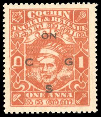 IFS Cochin 1943-44 Official 1a brown-orange wmk 27 type O10 opt