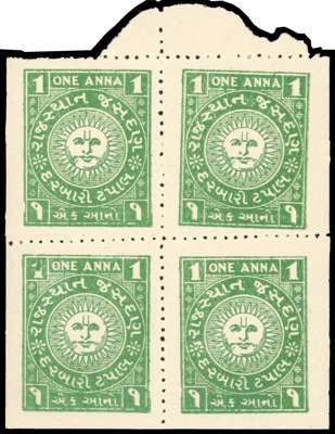 1942-7 1a light green perf 12 booklet pane of four with part selvedge at top, unmounted o.g. Upper left stamp with short perfs at top, otherwise fine and very rare, one of the seven panes of this previously unknown printing discovered in 1991. SG 2, £7200