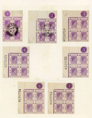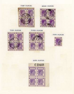 1938-52 10c collection. The first four printings represented by used blocks, the fifth by a used single, and then Requisition C, F, L, M (2), N, Q (5) and R mint blocks; the duplicated blocks encompassing Plates 1-7, with Plates 1 and 2 in used blocks. A good collection, ex Jack Gee. SG 145-c