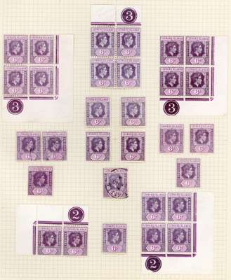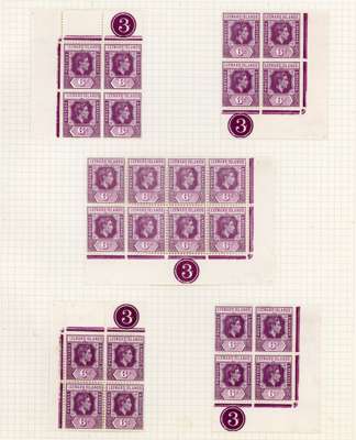 1938-51 mainly mint study collection on eight pages (R3/5 and 4/1 RP removed for separate offering), 141 stamps in all. Plate 1 TL and LR Plate blocks of four and subsequent printings with fifteen Plate blocks, with detailed observations on the flaws by Stuart Stokes, from whose collection this comes. Mostly fine. SG 109-b