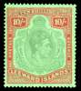 1942 (Mar.) 10/- pale green and dull red on green paper, large part o.g. HPF #54, large dent in lower left scroll. SG 113a, £850