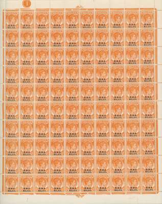 1946 2c Die I sheet of 100, 'ghost; Plate number at base, unmounted o.g. Central vertical fold and a few minor marks on reverse, otherwise fine. SG 3, £3000