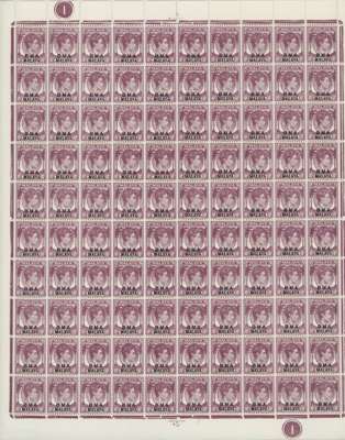 1945-8 10c Die I multiples unmounted o.g, Good range of printings including chalky paper blocks of 94 and 20, and magenta block of 94, most lower right Plate blocks removed otherwise a good lot. SG 8-c