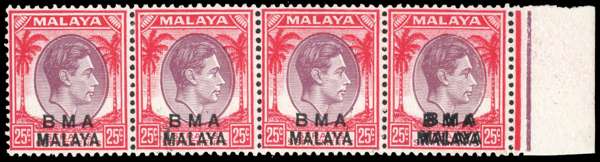 Malaya BMA SG 13ab, ad strip mint