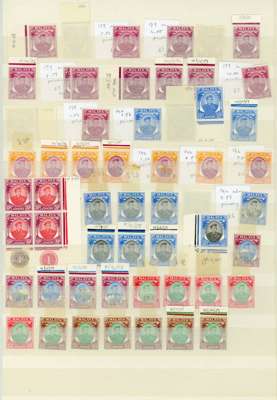 1949-58 mint printings collection with 2c (2 blocks including pale yellow, 4 singles; 4c 11 singles; 5c block, 8 singles; 6c block, 12 singles; 10c 22 singles; 15c 2 singles; 20c blue 2 singles; 25c 7 singles; 30c block; 50c 9 singles; $1 5 singles; $2 5 singles; $5 6 singles. All with contemporary dates or identified from a reliable collection; some dated on hinges with many unmounted and dated on the margins. SG 134/147