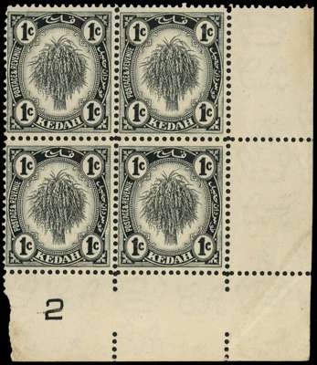 Malaya Kedah SG 68a Plate block mint